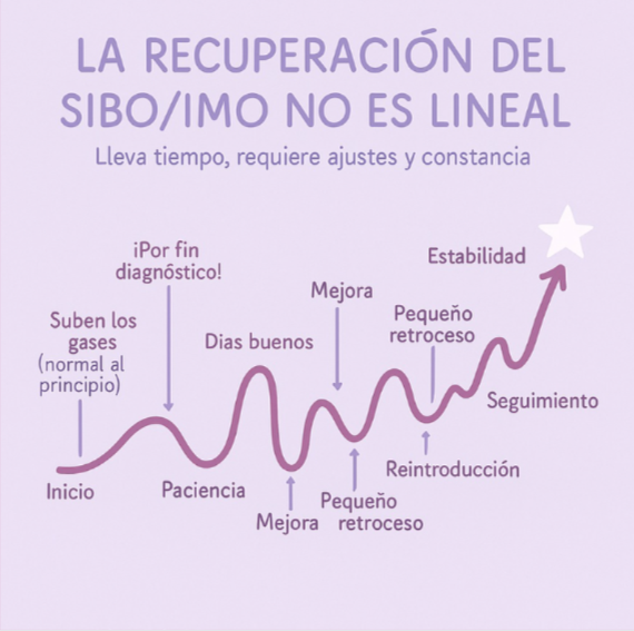 Recuperar tu intestino no es lineal. Es un proceso más como un serrucho que en línea ascendente. Lleno de recaídas, días malos, pequeños retrocesos…
